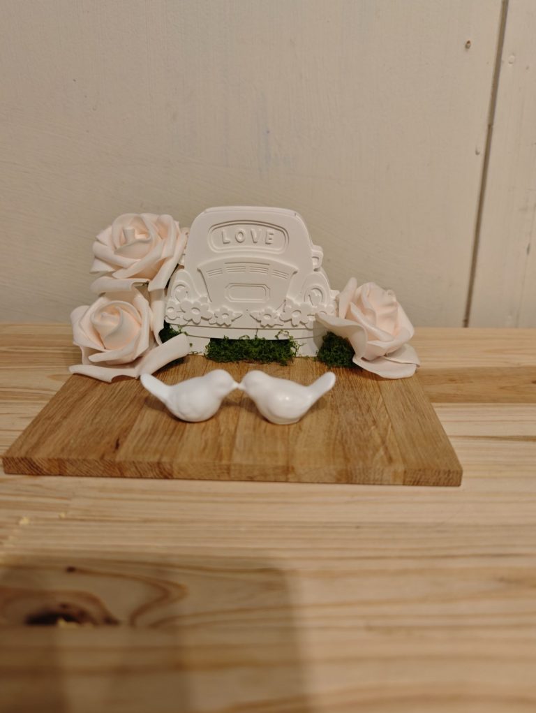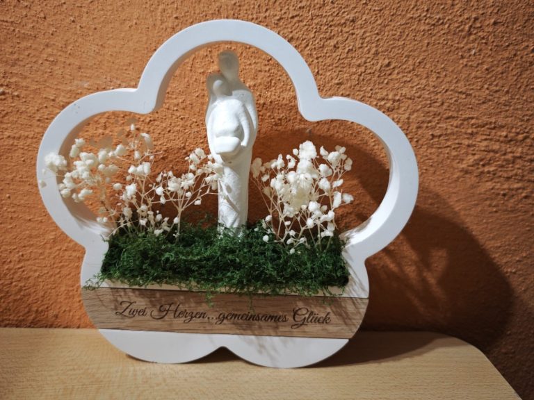 • zum Aufhängen oder hinstellen, inkl. Blumendeko und Gravur,